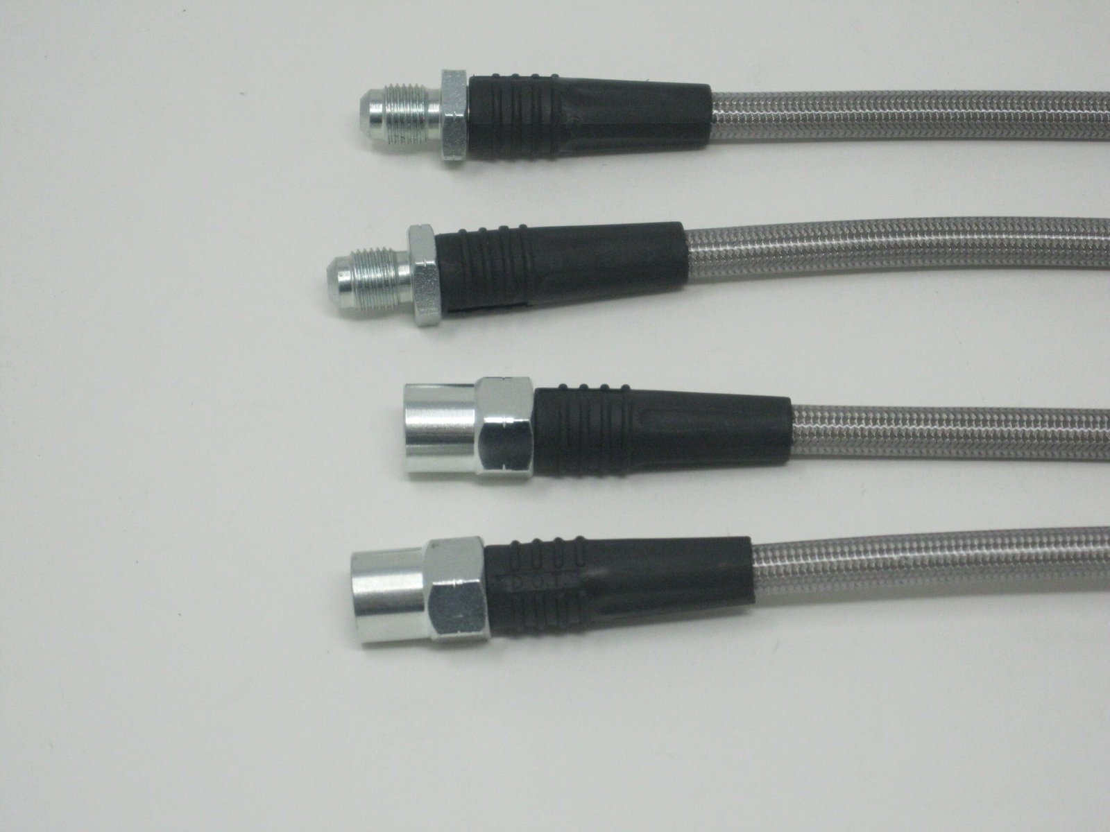 -2 STAINLESS STEEL COVERED PTFE HOSES STRAIGHT TO 90° WITH -3 ENDS
